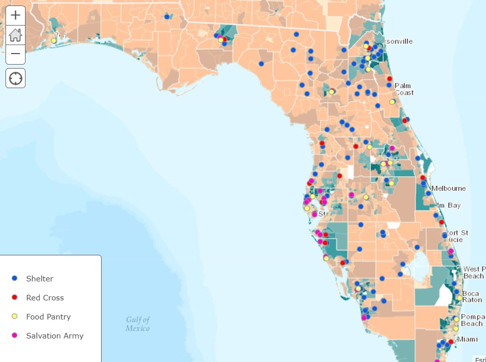 Florida Income Map Red Cross Salvation Army Food Pantries