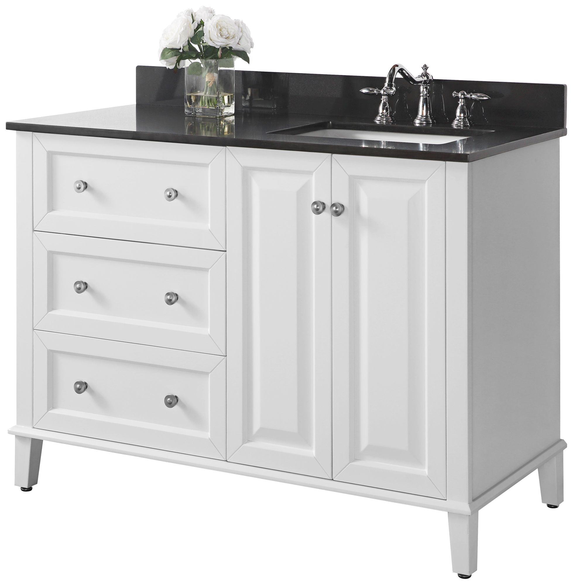 Hannah White 48 Quot Granite Top Off Center Right Sink Vanity